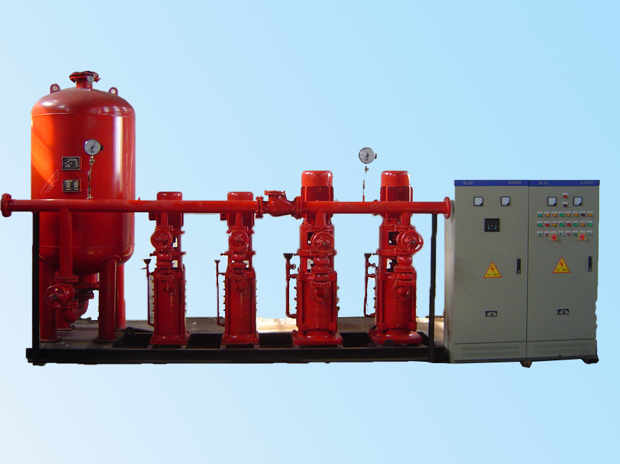 我公司生產的QJ系列應急消防氣壓給水設備是以GB50015-2003《建筑給水排水設計規范》、GB50016-2014《建筑設計防火規范》、GB50045-95《高層民用建筑設計防火規范》、GB50084-2017《自動噴水滅火系統設計規范》為設計依據;以GB27898.1-2011《固定消防給水設備第1部分:消防氣壓給水設備》為標準生產的固定滅火設備。該設備由氣壓罐、補水泵組、電控柜及儀表、閥門、管路、設備底座等組成,是以氣壓罐為核心部件,向消防管網按設定壓力持續供水的固定消防給水設備。主要是為了滿足建筑物十分鐘的消防初期用水,在一些無法設置高位水箱場合用來代替高位水箱,還有一些有消防要求的臨時建筑物。
