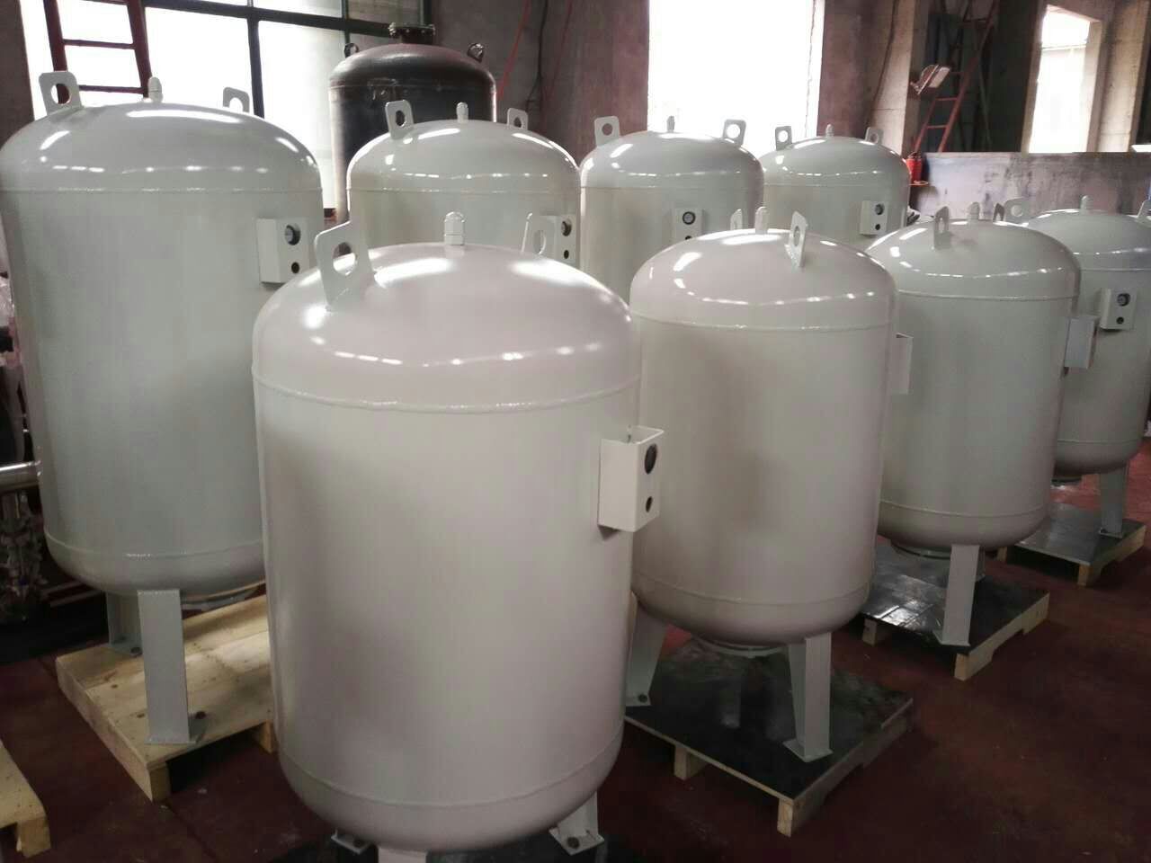 罐體采用碳鋼、304不銹鋼、316不銹鋼等材質(zhì)鋼板加工制作。接口一般采用304不銹鋼絲扣接口(法蘭接口須訂貨前說(shuō)明)。罐內(nèi)核心部件采用高品質(zhì)橡膠氣囊,材質(zhì)一般為天然橡膠、丁基橡膠、三元乙丙橡膠等。完全符合供水衛(wèi)生標(biāo)準(zhǔn)??蛇x容積有50L~10000L不等。工作溫度在-10°C~90°C,一般預(yù)充壓力在0.2mpa—0.75mpa之間(可根據(jù)實(shí)際供水壓力在出廠時(shí)作出相應(yīng)的調(diào)整,用戶訂貨時(shí)可向我司說(shuō)明,如無(wú)說(shuō)明,一般默認(rèn)為0.4mpa)。安裝方式一般為立式(如需臥式請(qǐng)?jiān)谟嗀浨傲硗庾稍儯?。常?guī)產(chǎn)品工作壓力在0.6~2.5mpa(如有特殊要求請(qǐng)與我司聯(lián)系)。